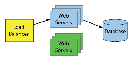 The Blue-Green technique is a really effective way to update services without requiring downtime. One of the earliest references I could find for the Blue-Green method is in a book called Continuous Delivery by Humble and Farley. Martin Fowler also gives a good overview of it at BlueGreenDeployment. Here’s a diagram of the typical blue green method (adapted from Martin Fowler).